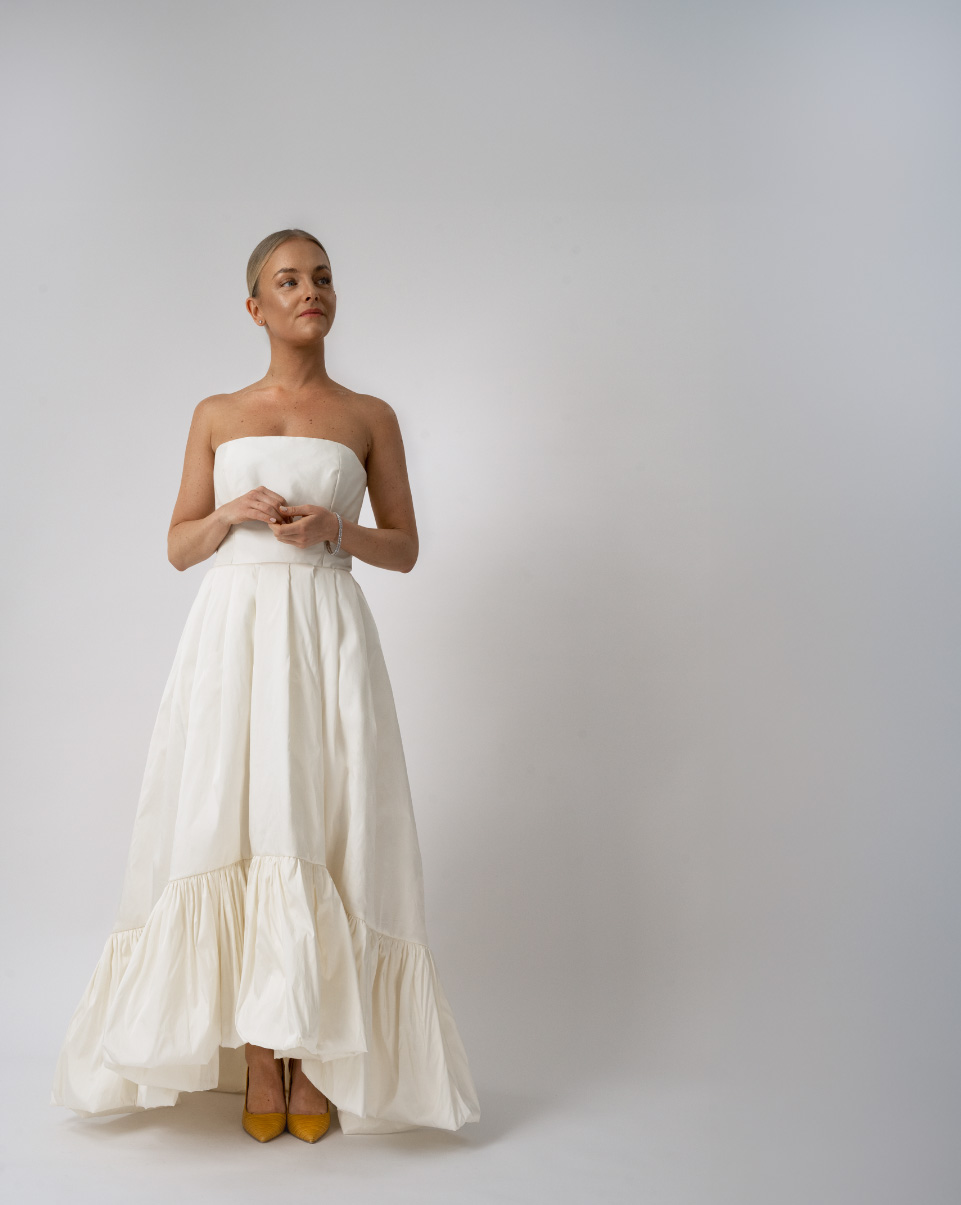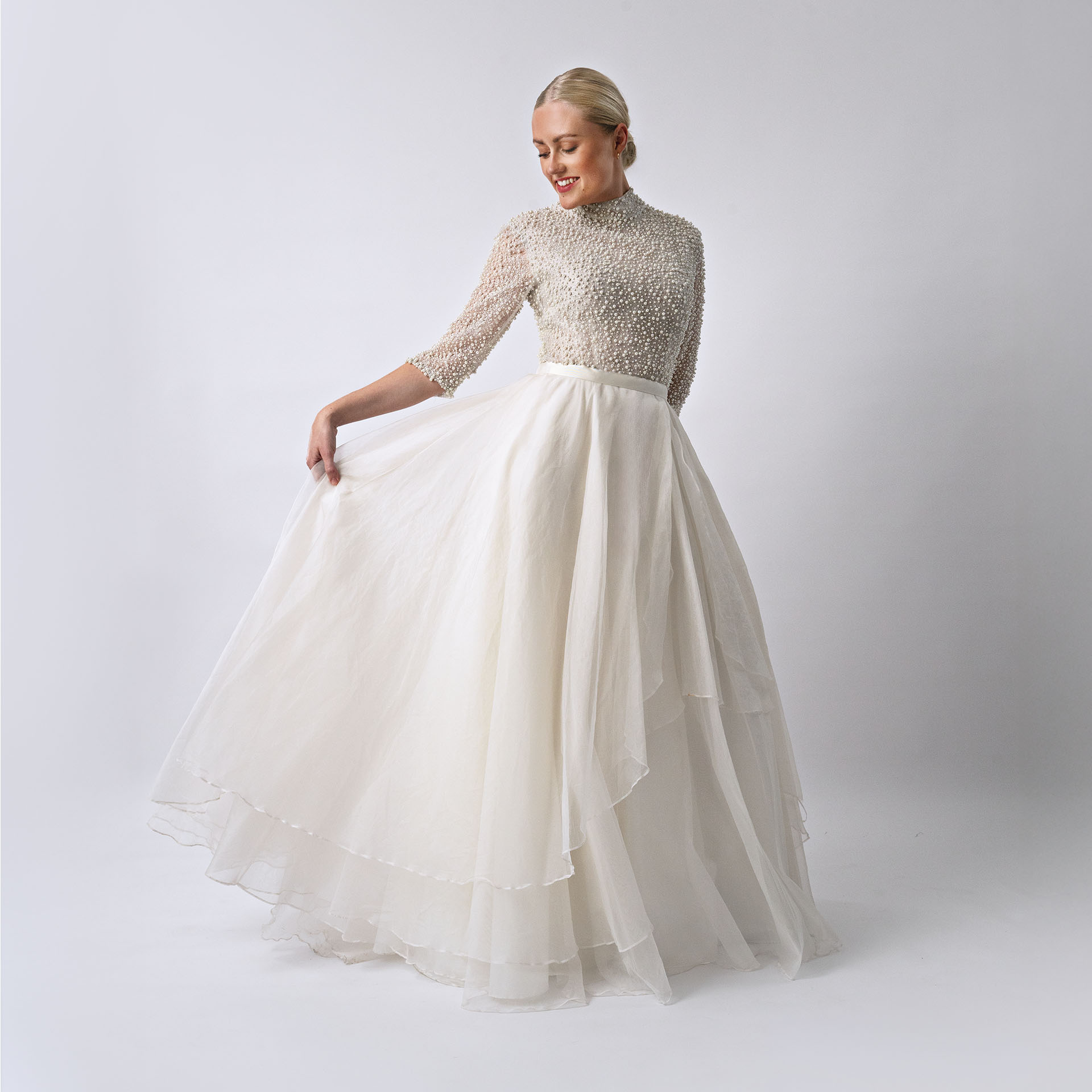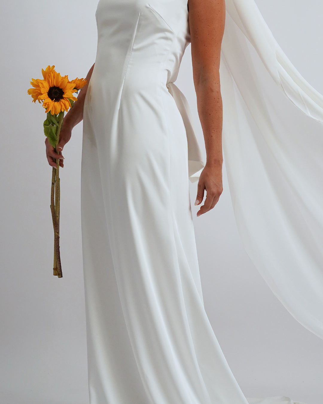 For os er det vigtigt at imødekomme hver kundes individuelle drømme om deres skræddersyede brudekjole. Derfor arbejder vi altid ud fra netop din kropsform, smag, personlighed og ønsker for at du kan fremstå i den bedste udgave af dig selv. Vi sætter i allerhøjeste grad en dyd i det kvalitetsbevidste håndværk inden for skræddersyede kjoler. Derfor arbejder vi meget i 100 % silkematerialer som fx silke-foer, silke-chiffon, silke-satin og silke-blonder. Da silke er et naturmateriale er det ikke statisk elektrisk og vil derfor ikke komme i karambolage med hår og make-up.